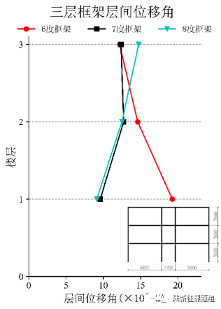 从图3-图5可以看出,T2271台站记录下,6度设防框架层间位移角已经达到1/50,接近抗震规范的限值。而在EYUL台站记录下,框架层间位移角则都低于1/50。最有意思的是在ECS台站记录下,虽然其峰值加速度并不大,但是由于其1s左右反应谱的高平台,使得6度、7度、8度设防框架的层间位移角都显著大于1/50,展现出这个地震记录强大的破坏能力。随着技术的发展,台站越来越密,精度越来越高,因此多次地震后都曾采集到峰值加速度和短周期段反应谱值都很高的地面运动(例如T2271台站记录)。但是,由于结构的动力特性不同,这些地面运动实际破坏能力未必就一定大,比如ECS台站记录的峰值加速度和短周期反应谱值都不及T2271,但是对这个三层框架结构却更加致命。这里需要补充说明一下,由于6、7、8度三个框架的自振周期等动力特性不同,而实际地震动的反应谱也很复杂且和设计反应谱差距很大,因此弹塑性分析得到的层间位移角不是简单的6度>7度>8度。